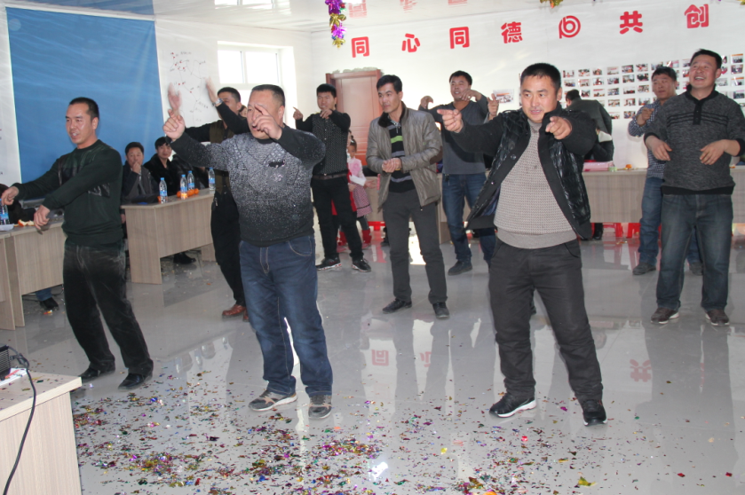 聯(lián)歡會最后由內(nèi)勤為大家?guī)淼母枨魈鞎茫T根i博公司明天會更美好!